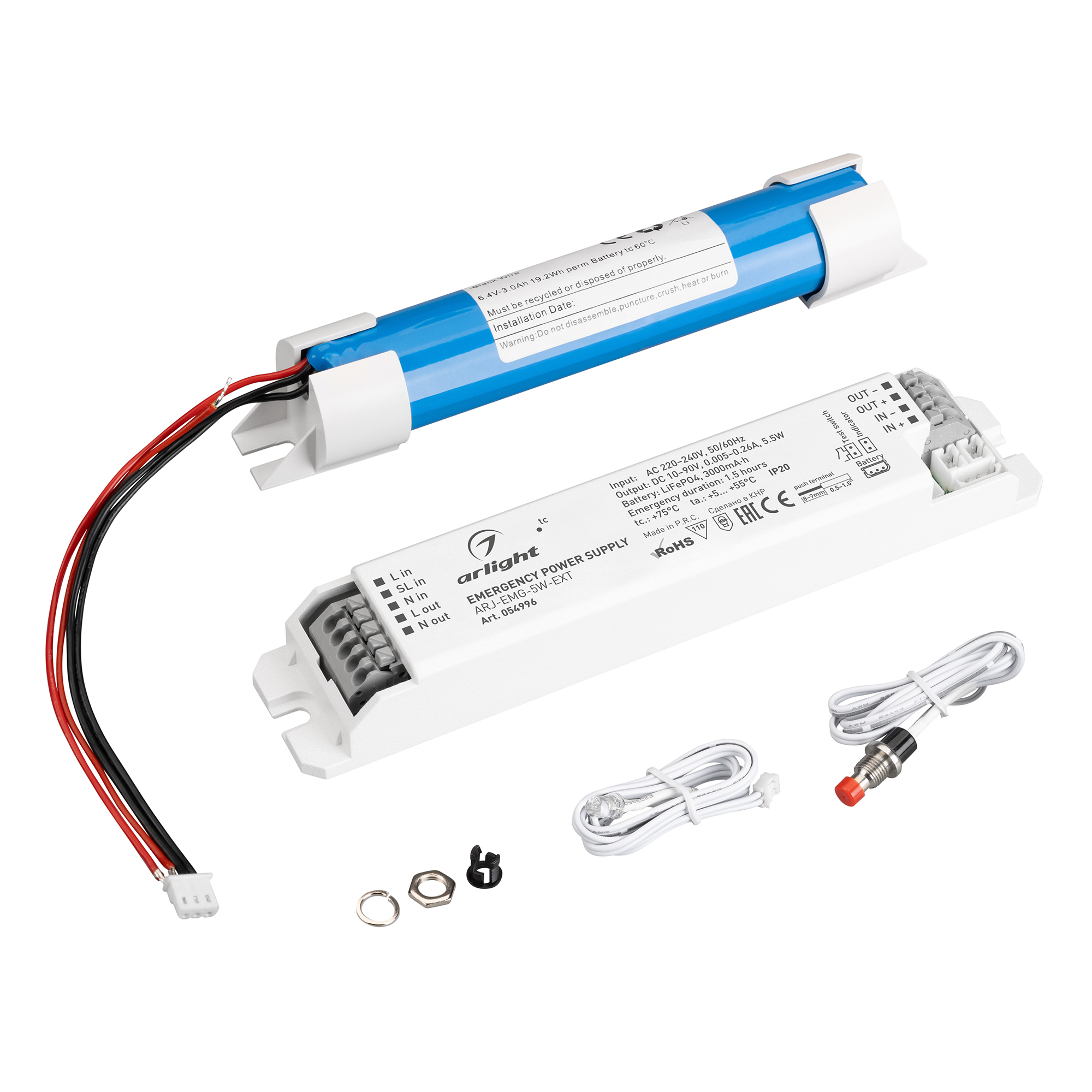 Блок аварийного питания ARJ-EMG-5W-EXT (10-90V, 1.5H, LiFePO4) (Arlight, IP20 Пластик, 3 года) 054996 в Оренбурге