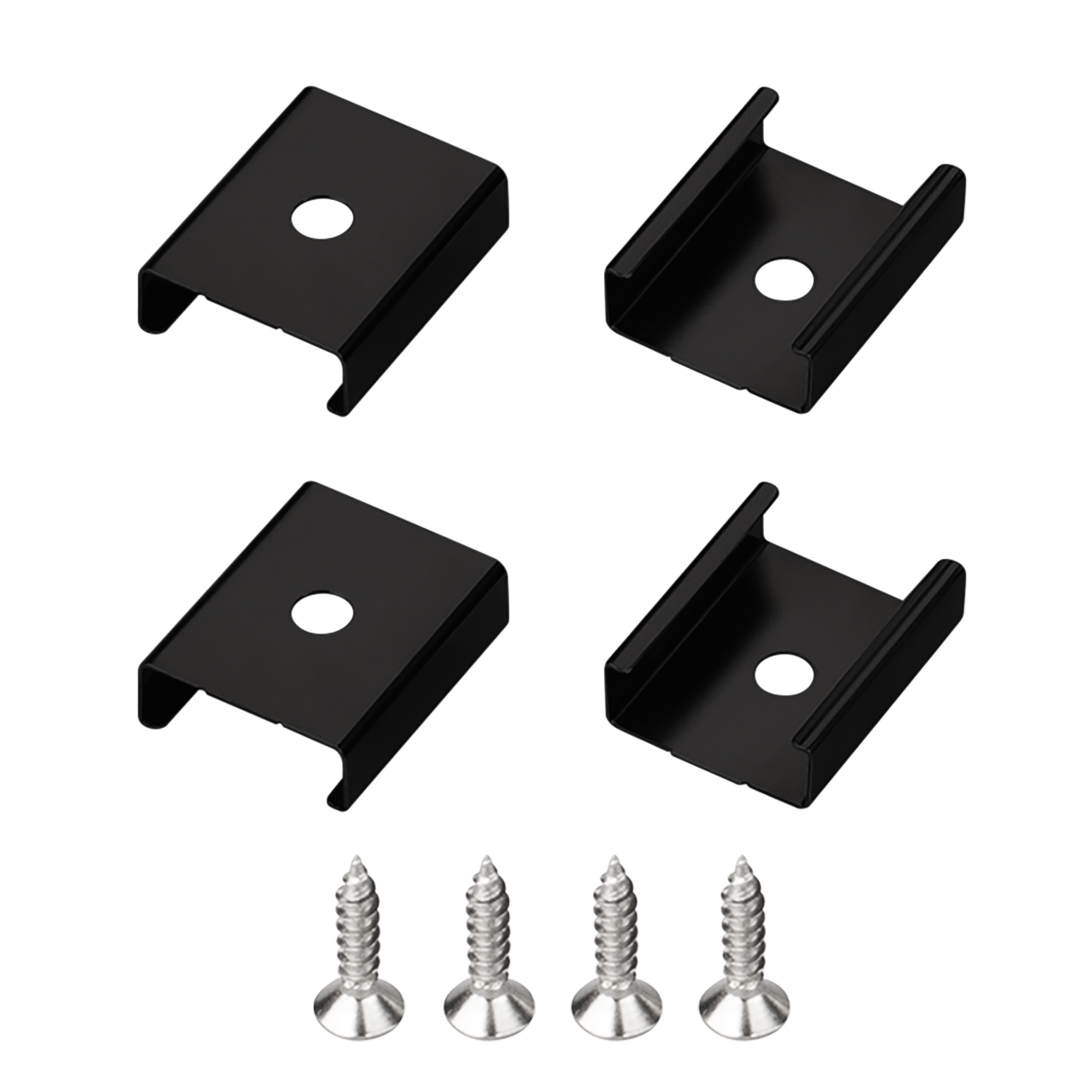 Комплект держателей черного цвета для профиля SL-MINI-10. В комплекте 4 держателя, 4 шурупа.