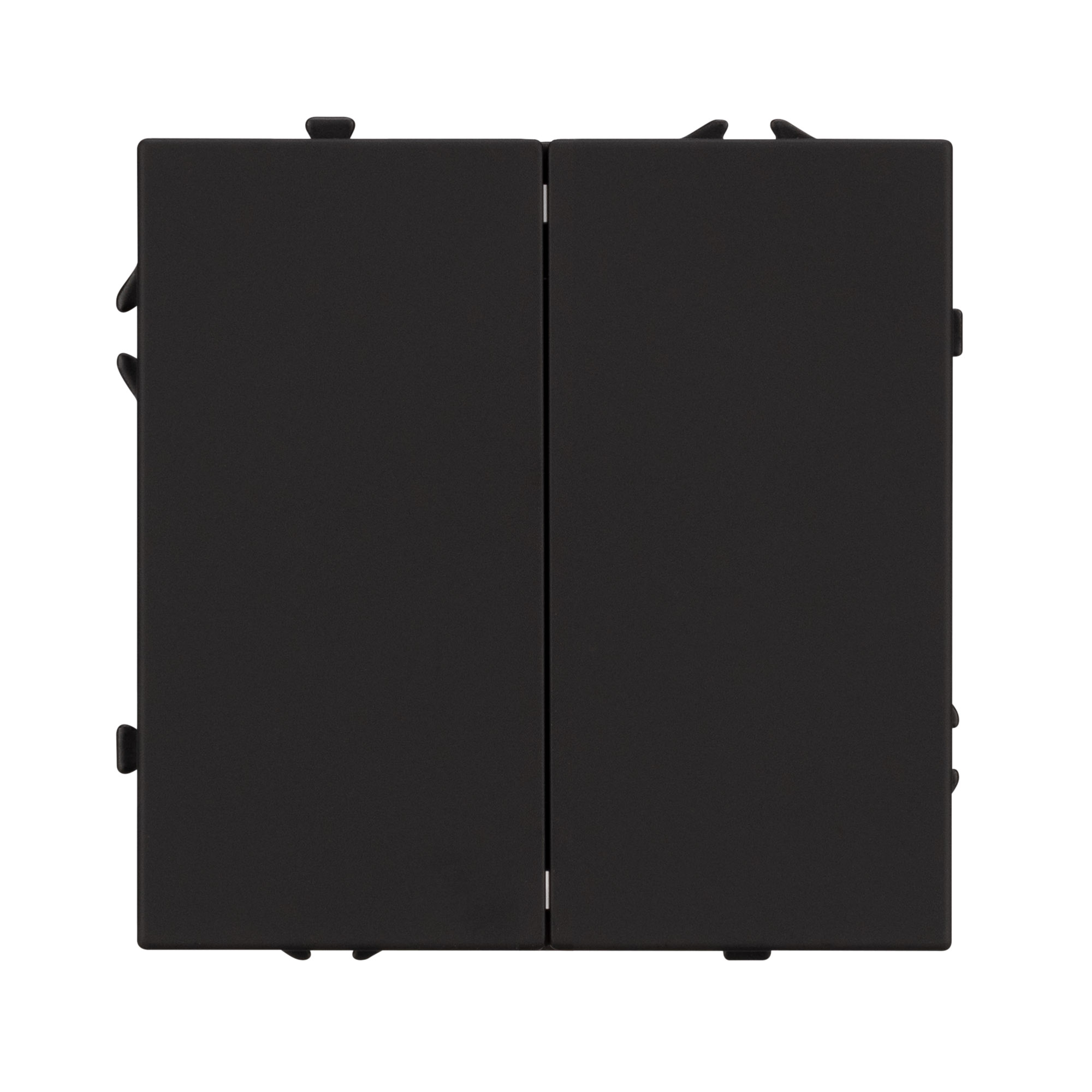 Механизм выключателя света клавишный на 1 пост 2 клавиши (непроходной). Цвет - черный, с Soft-Touch покрытием. Без фронтальной рамки. Уровень пылевлагозащиты IP20. Выключатель устанавливается в стандартный круглый подрозетник круглого сечения диаметром 60мм.